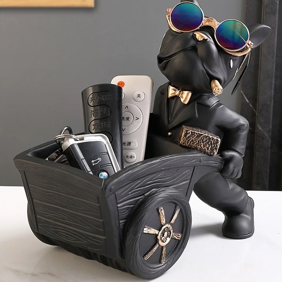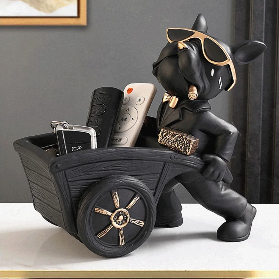 Matériaux de Qualité : Chaque bulldog est sculpté avec précision dans de la résine de qualité supérieure, offrant à la fois durabilité et finition esthétique de haut niveau. Les accessoires, tels que les lunettes de soleil et le nœud papillon, sont finis en métal doré, ajoutant une touche de luxe à chaque pièce.