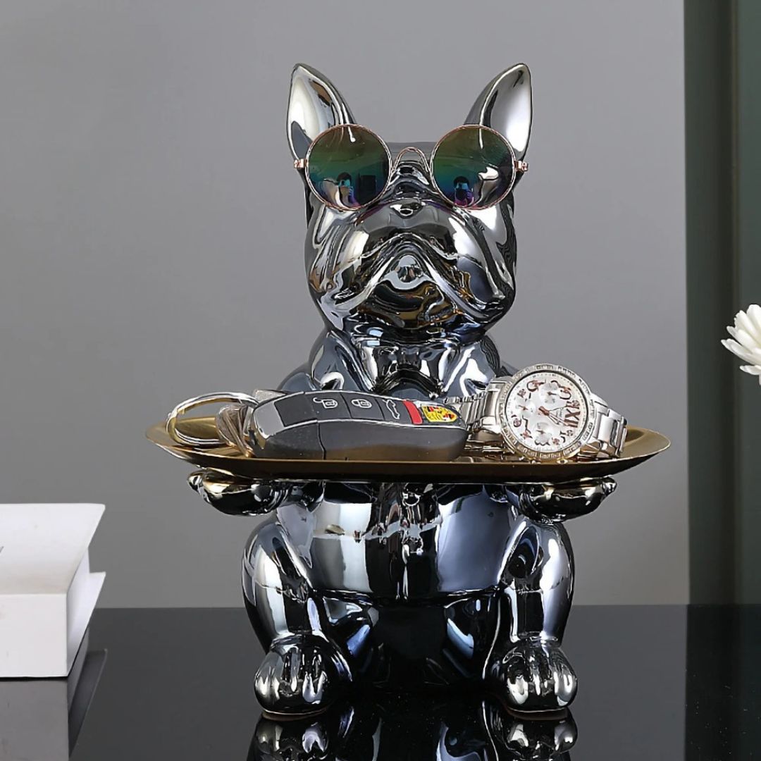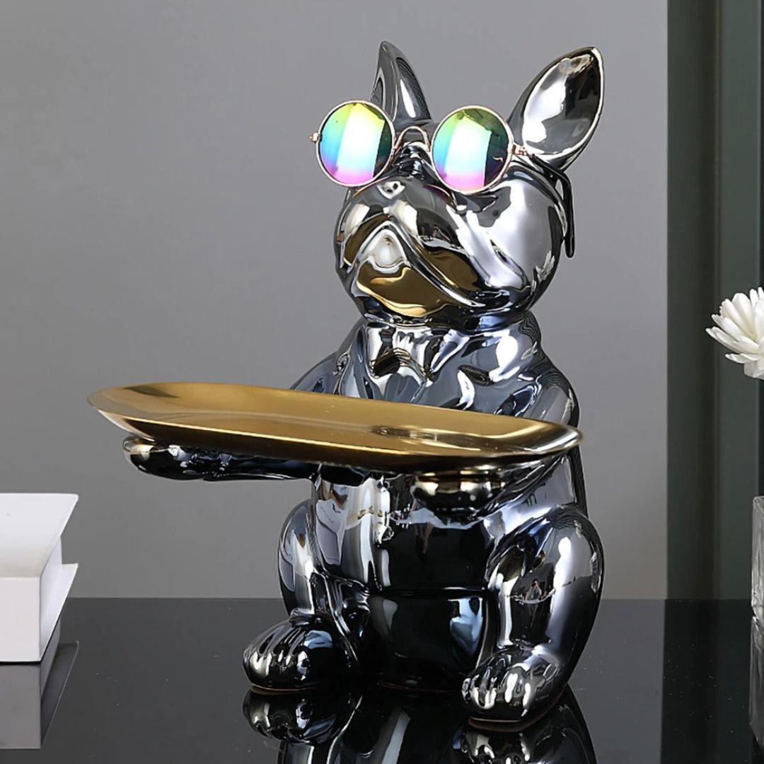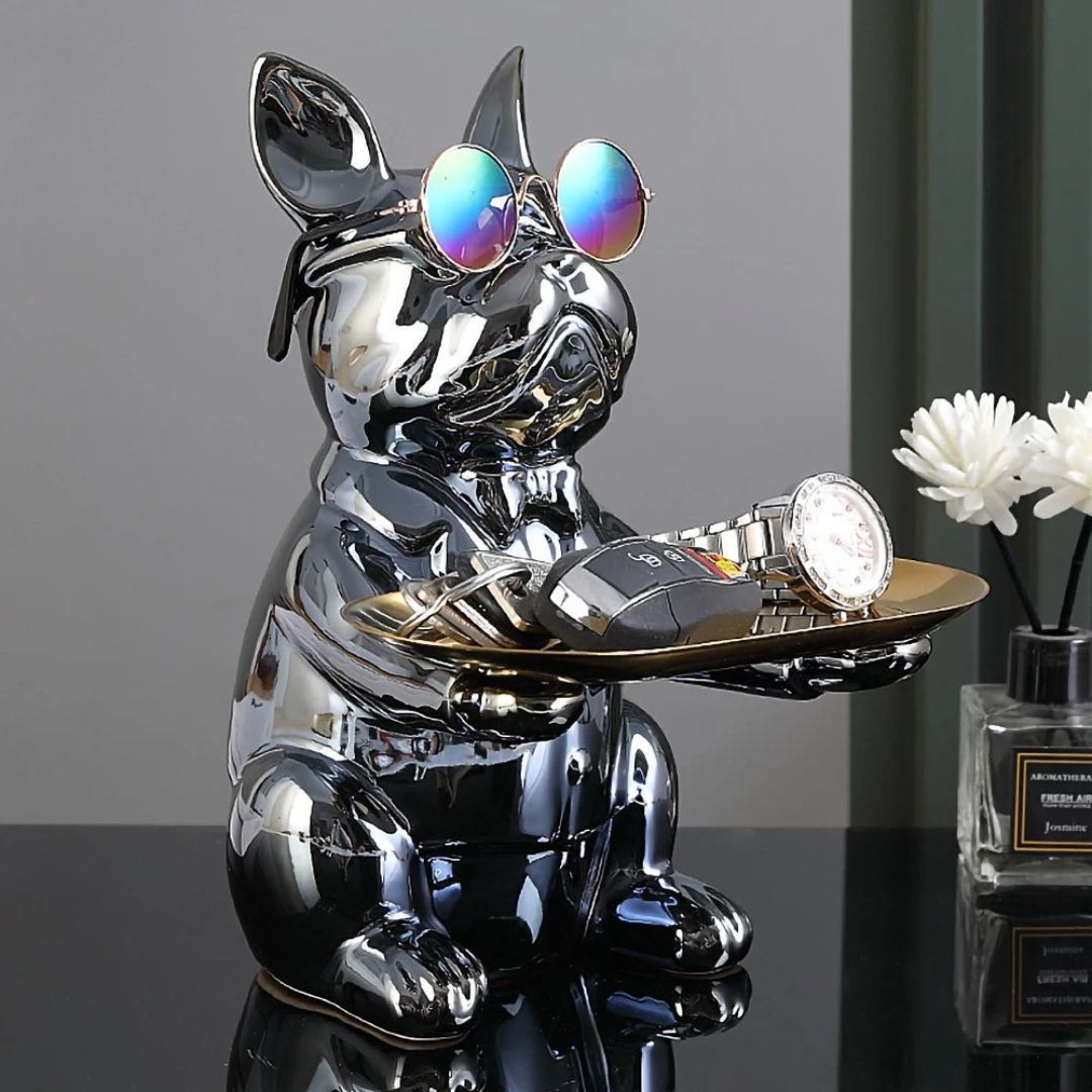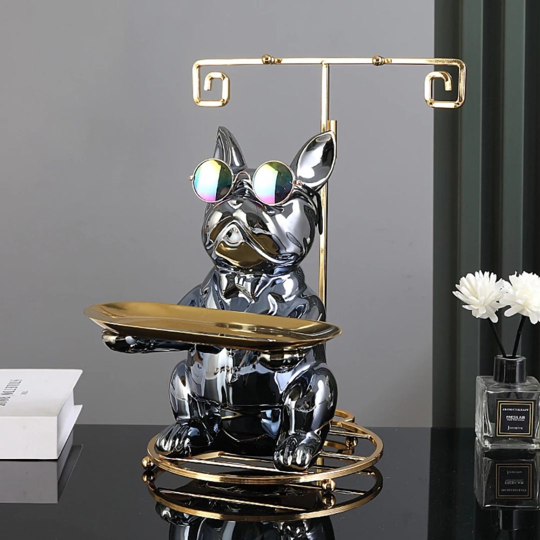 Apportez une touche de sophistication à votre intérieur avec la sculpture “Chic Canin”. Ce compagnon en chrome poli n’est pas seulement une œuvre d’art moderne, mais aussi un porte-accessoires pratique et élégant. Avec ses lunettes de soleil tendance et sa plateforme prête à accueillir vos objets précieux, comme des clés de voiture ou une montre, cette sculpture est le mélange parfait de fonctionnalité et de style.