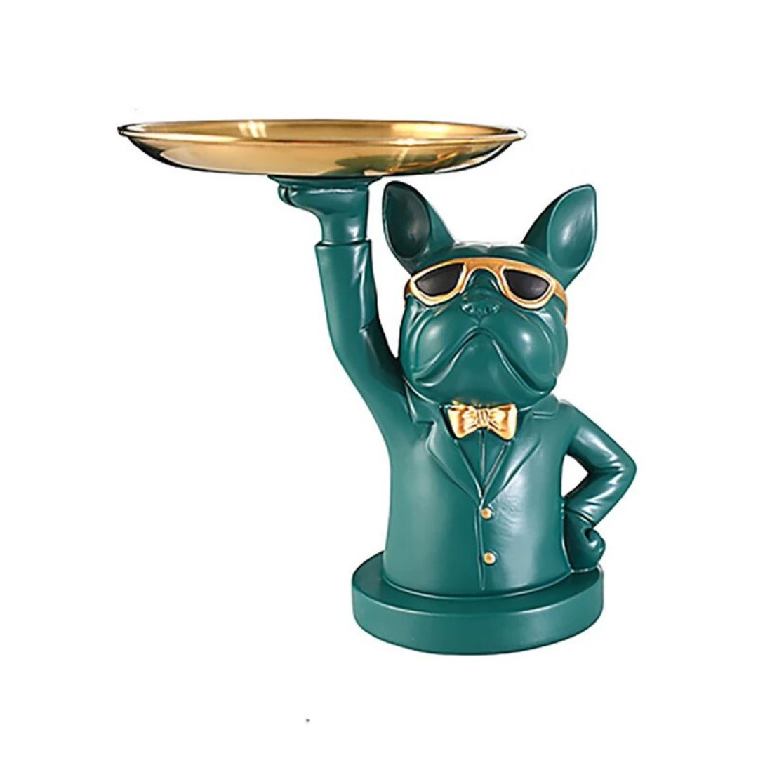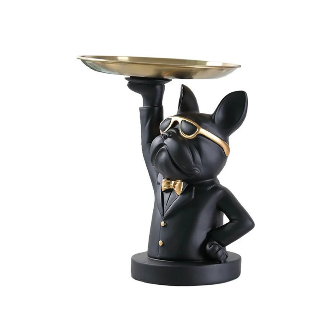 Majordome Astucieux : La figurine représente un bouledogue français agissant en tant que majordome, ajoutant une dose d’humour et de charme à votre intérieur.