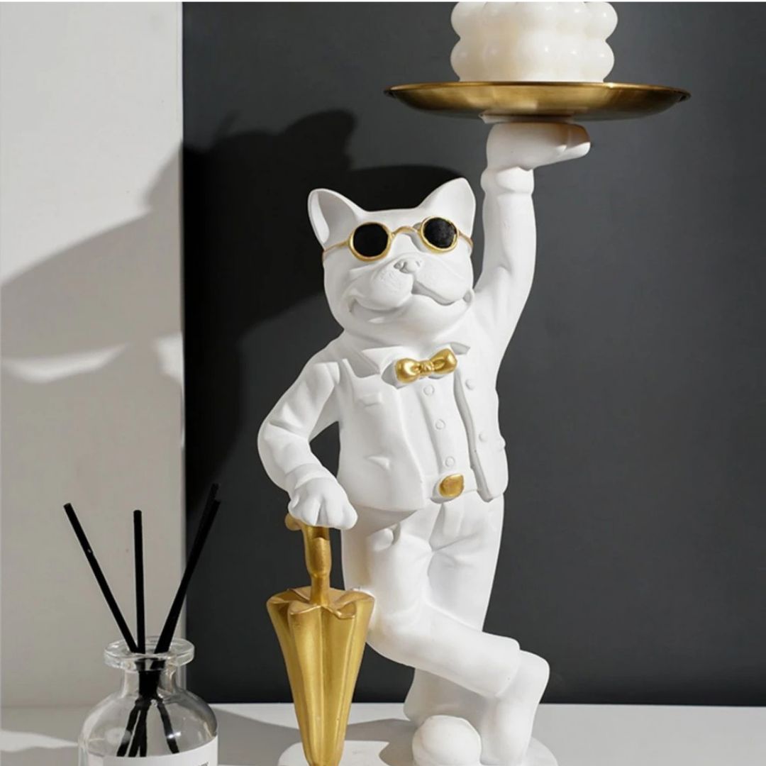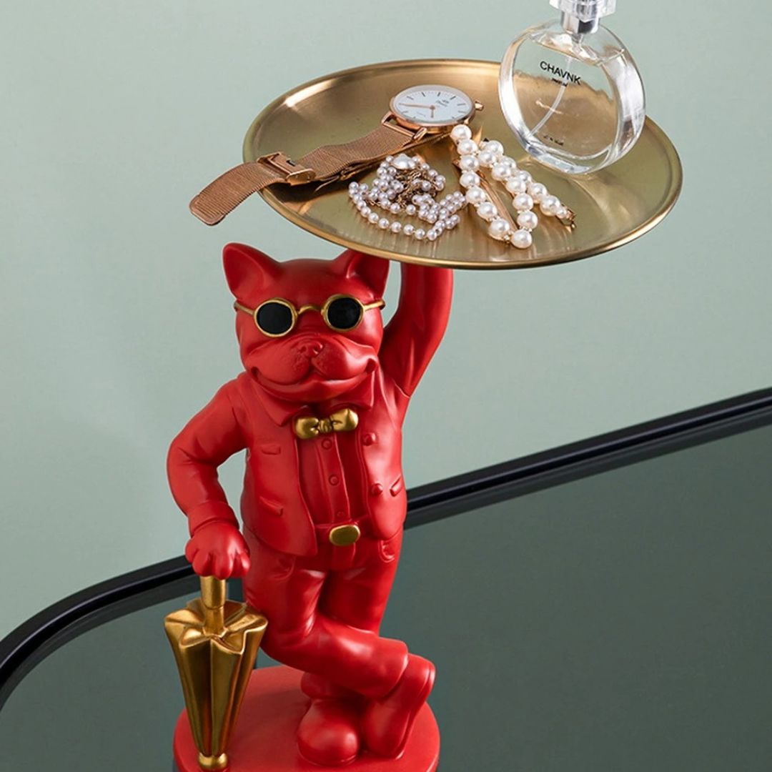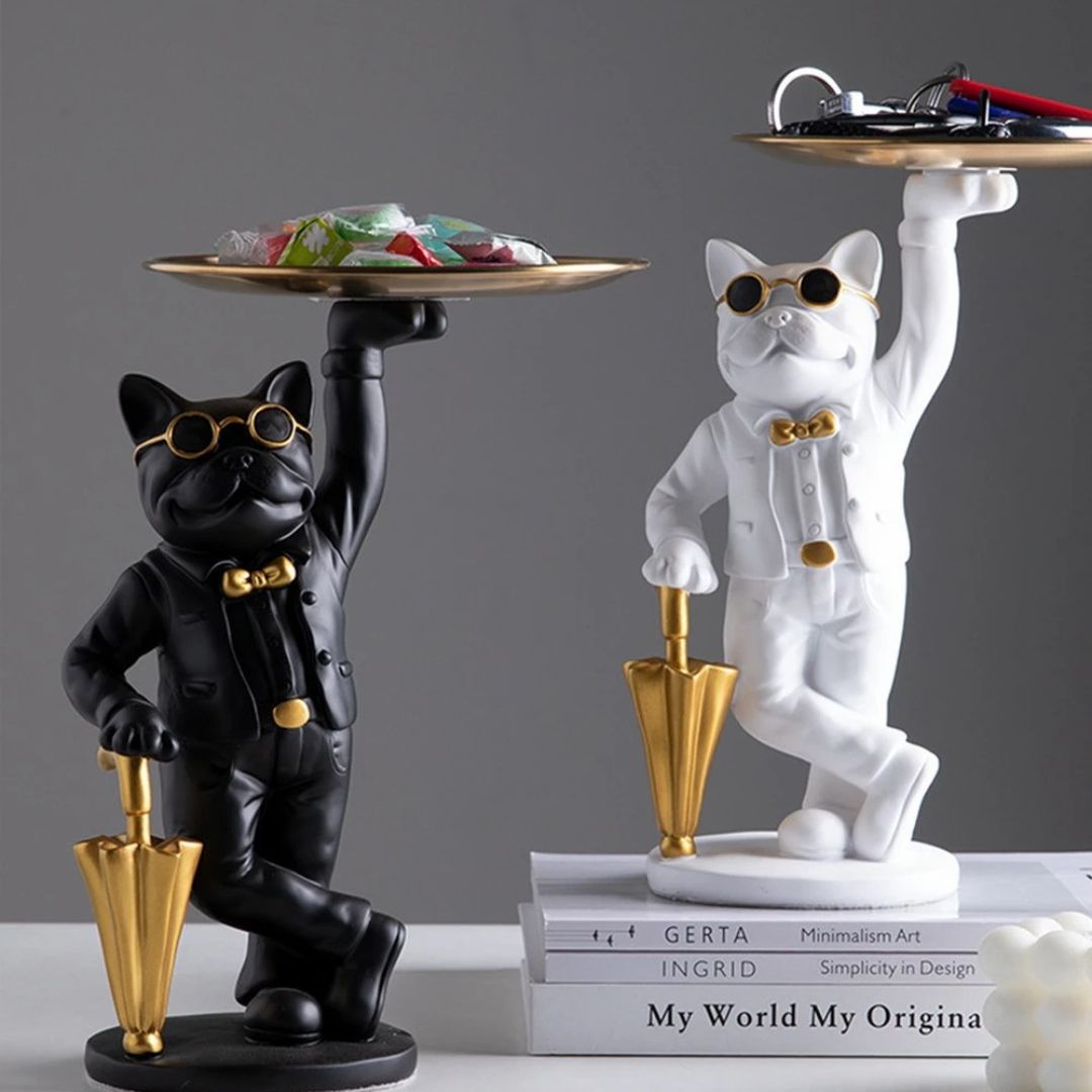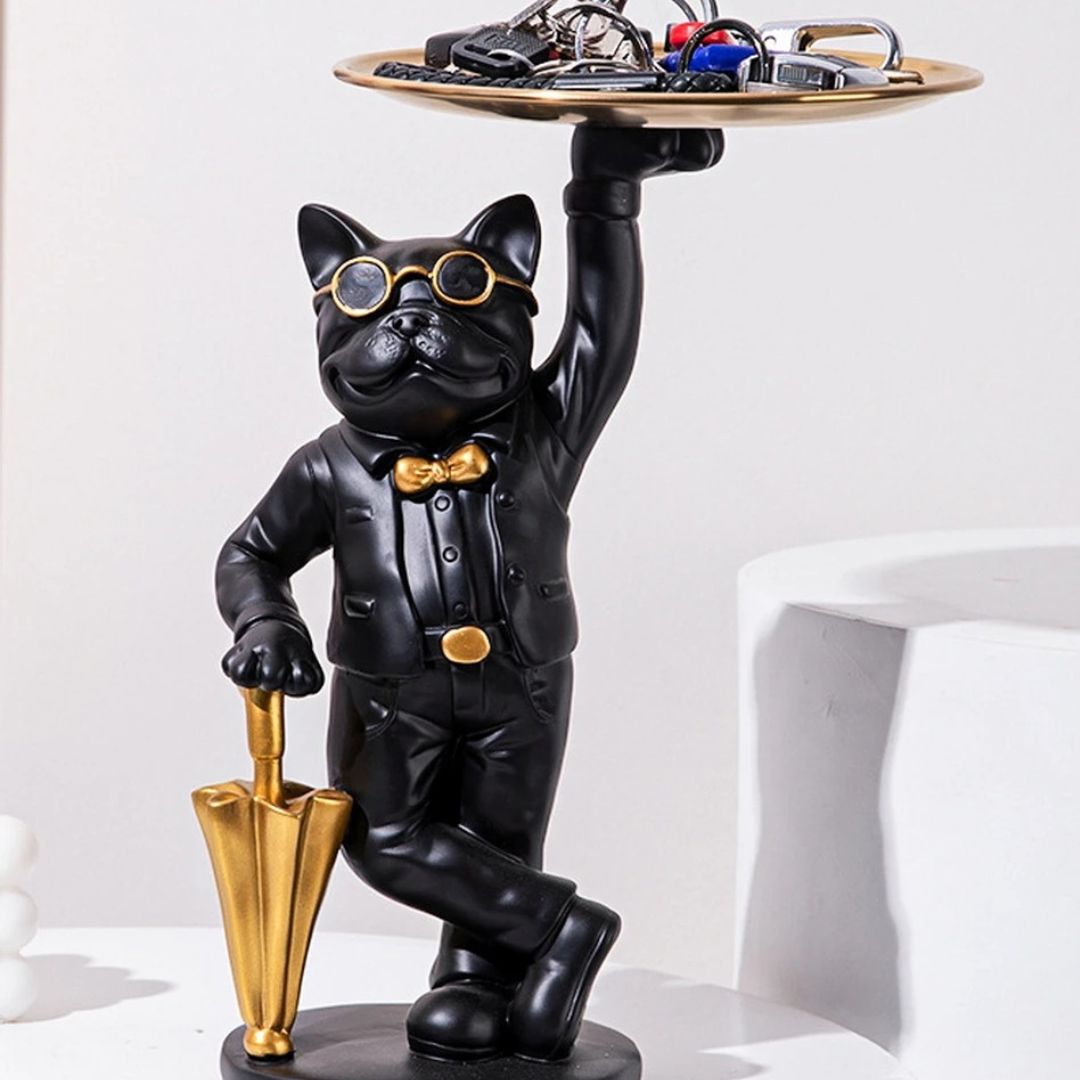 Découvrez le “Major Dog”, une statue en résine finement ouvragée qui apporte une touche d’élégance à tout intérieur. Sous les traits d’un bulldog serveur, cet objet d’art est à la fois une statue décorative et un plateau de service pratique, idéal pour accueillir vos invités avec style ou pour garder à portée de main vos objets précieux.