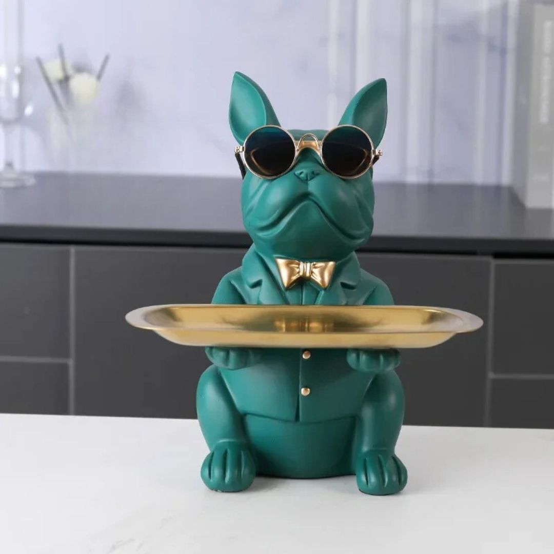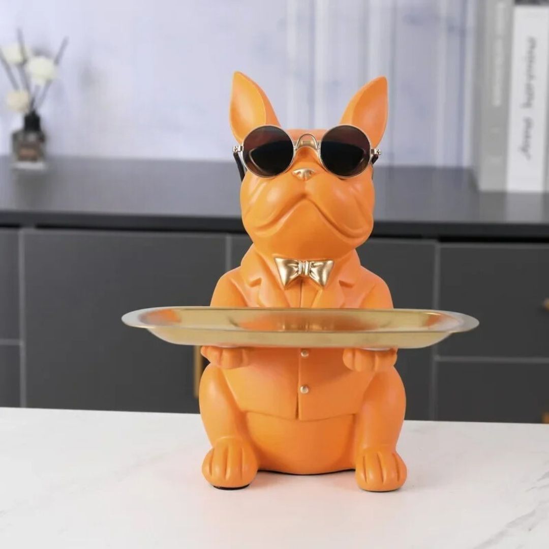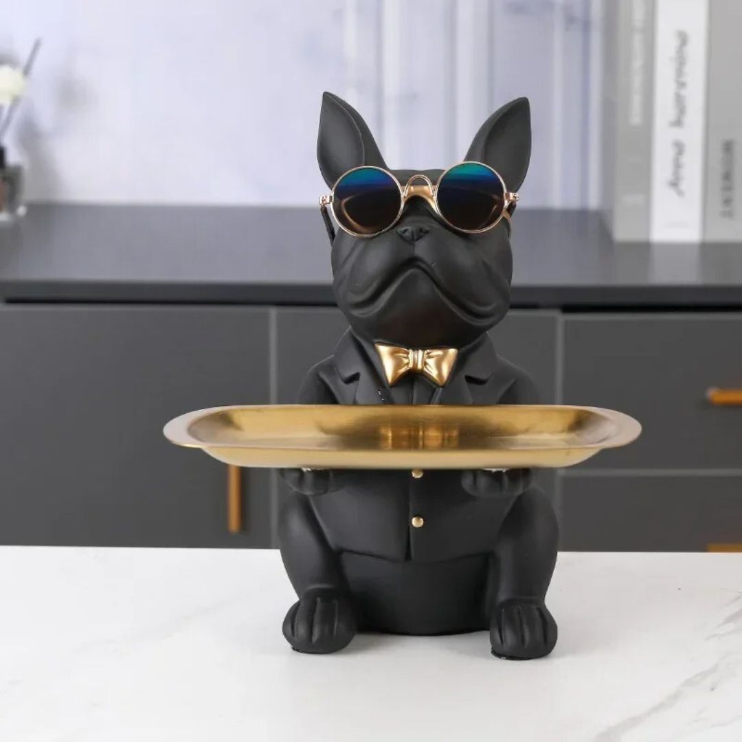 Majordome Astucieux : La figurine représente un bouledogue français agissant en tant que majordome, ajoutant une dose d’humour et de charme à votre intérieur.