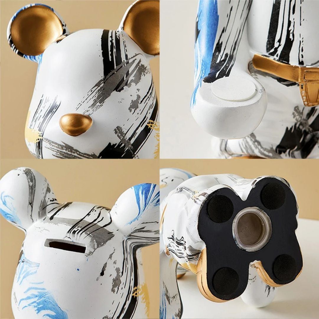 Le Teddy Teller est une combinaison enchantée de fantaisie artistique et de fonctionnalité pratique. Non seulement il sert de tirelire pour collecter vos économies avec un charme ludique, mais il offre également un plateau pour tenir avec soin vos petits objets précieux. Avec une hauteur de 32 cm et disponible en deux couleurs captivantes, cette sculpture en résine trouvera sa place dans tout intérieur recherchant une touche de magie et d’organisation.